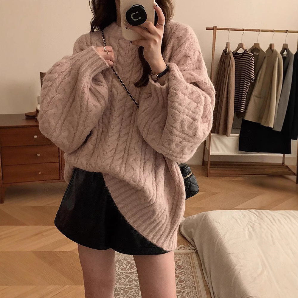 Round Collar 2025 New Soft-Mascued Knitting Coat On The Head Of The Lazy Wind Korean Version Of The Loose Sweater Coat Women's Large Autumn And Winter HZ0108