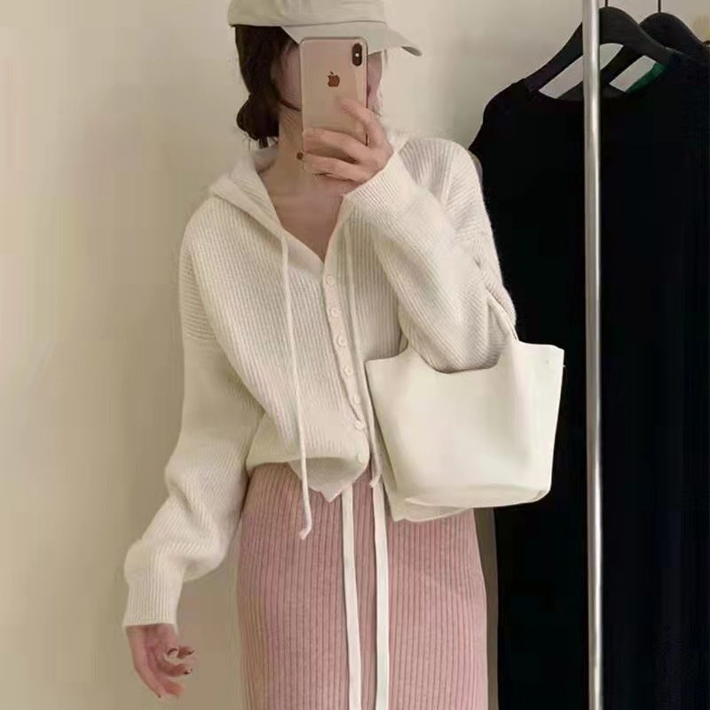 Short Hooded Sweater Cardigan Women Loose Korean Spring And Autumn Lazy Little Man To Wear A Knitted Coat Top HZ0108