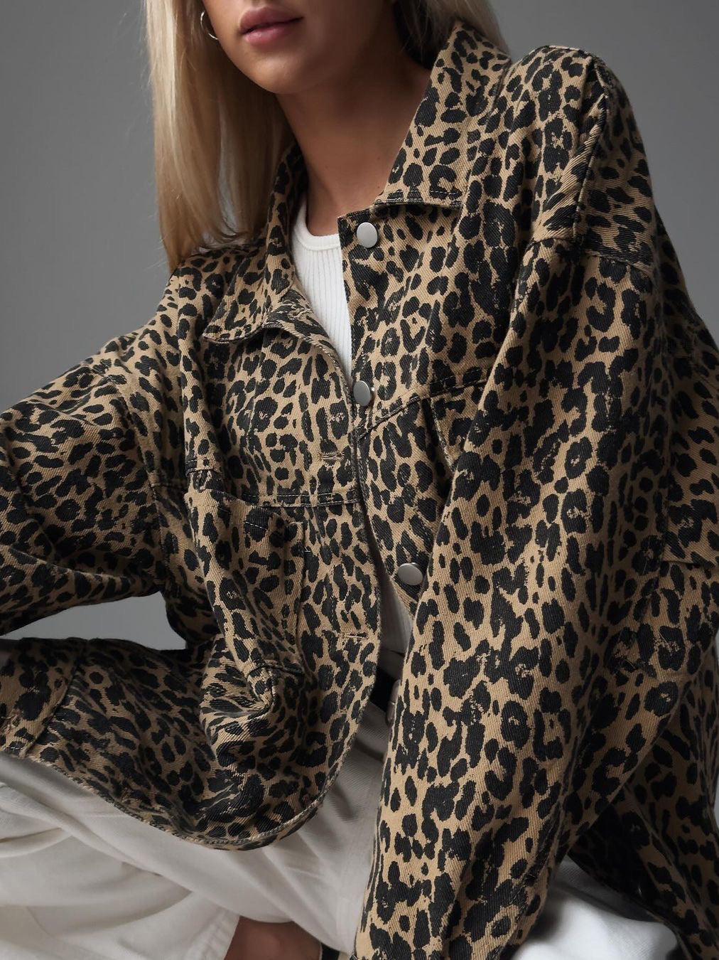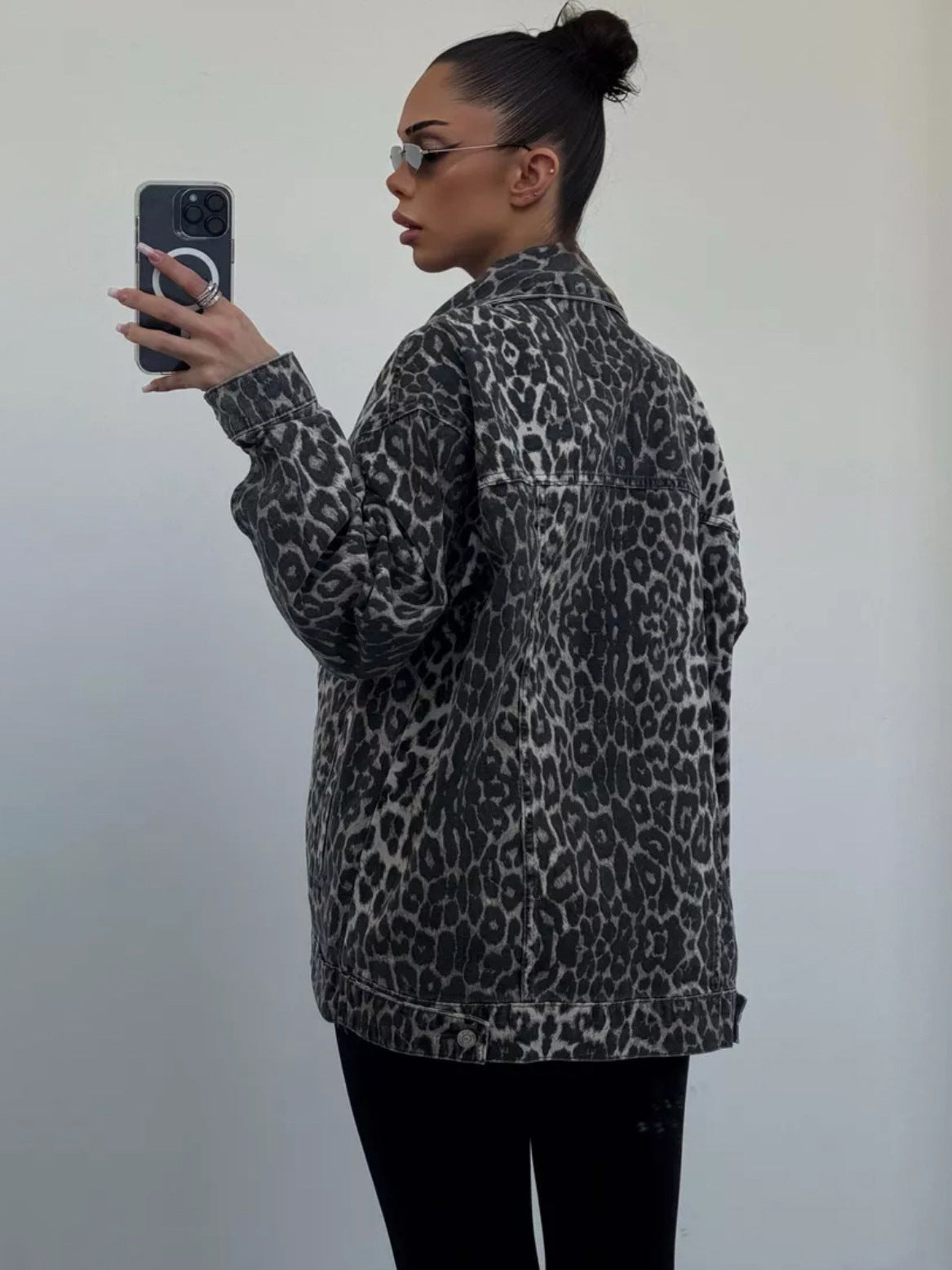 High-End Leopard-Print Denim Jacket Women Spring 2025 New Loose Casual Fashion Cardigan Women HZ0108