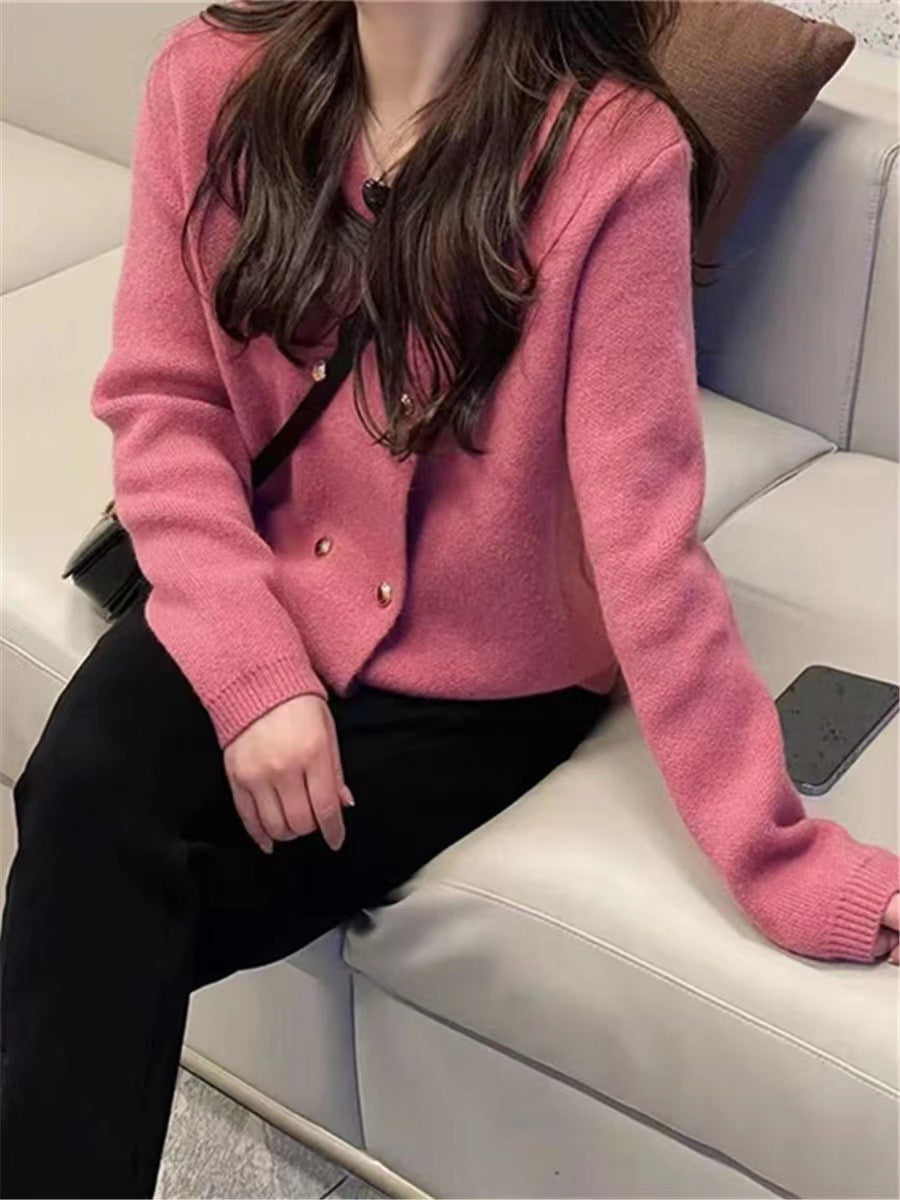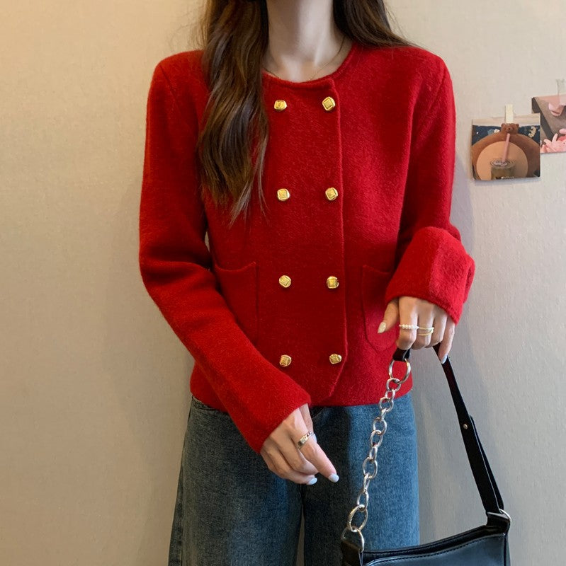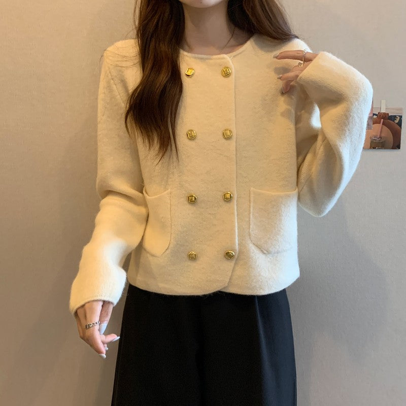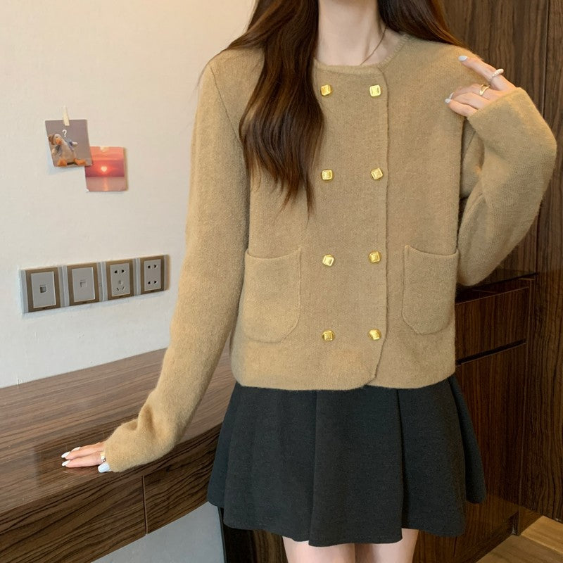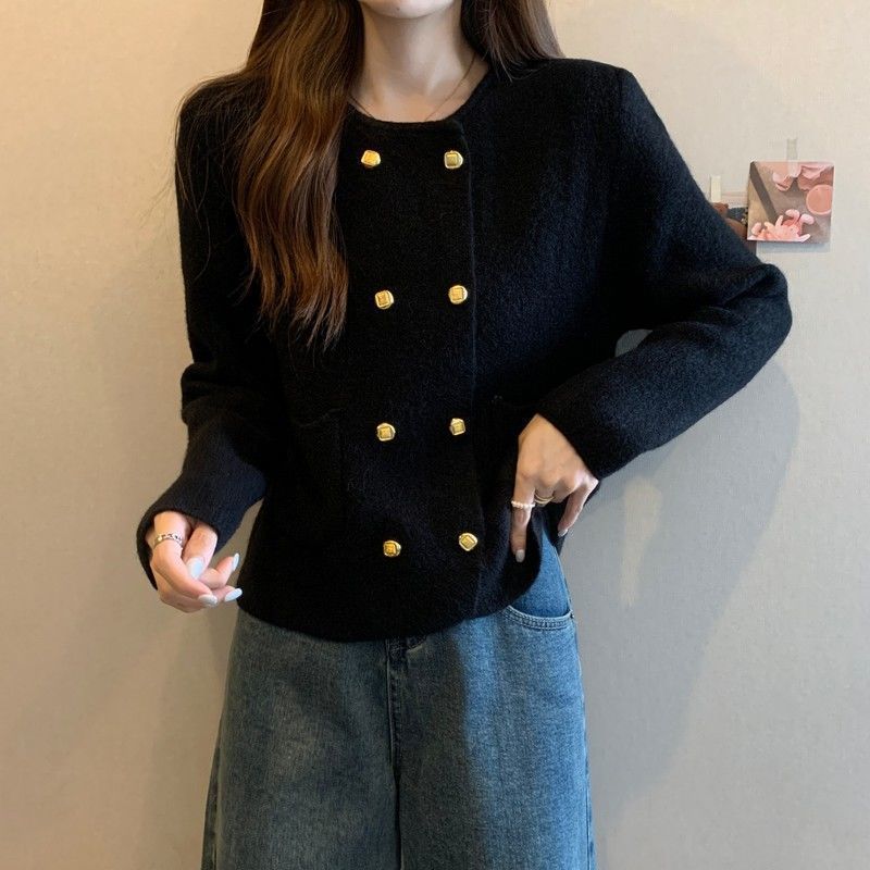 Small Fragrant French Retro Double-Bronched Sweater Coat Women's Spring And Autumn High-End Famous Temperament Knitted Cardigan Women's Clothing HZ0108