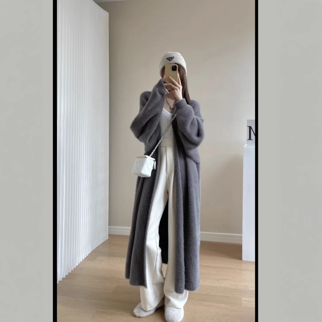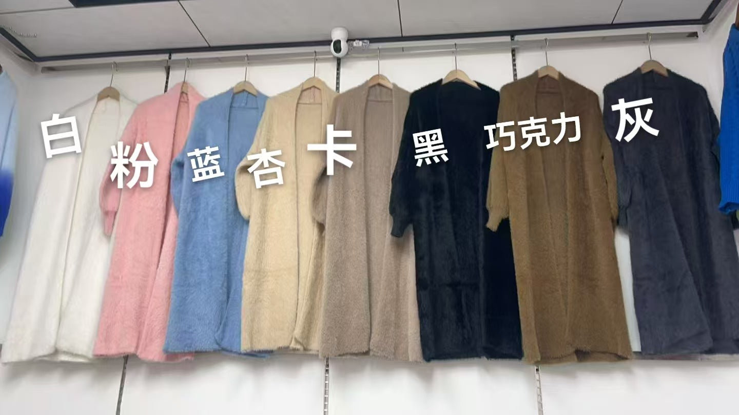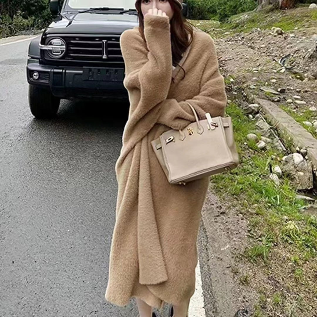 2025 Autumn Women's Loose Long Sweater Knitted Shirt Coat Lazy Wind Imitation Water Velvet Knitted Shirt Woman HZ0108