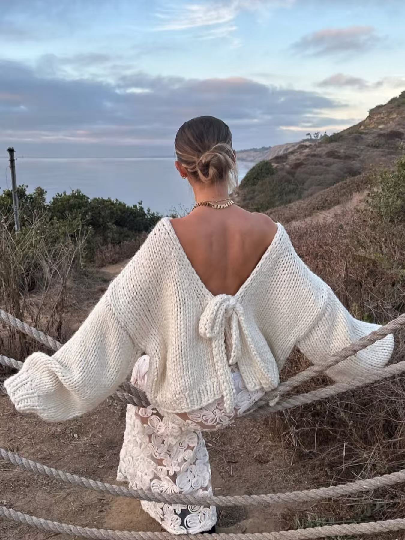 2025 New Personality Short Coarse Needle Bow Strap Straight And Reverse Two Open-Shirt Jacket Sweater HZ0108