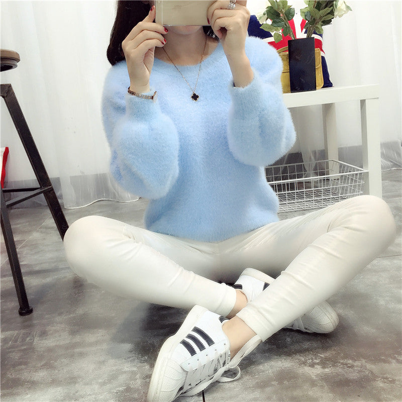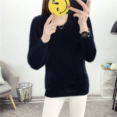 2025 New Sweater Women Wear Imitation Water Stinget Lint Knitted Bottom Shirt To Keep Warm Round Collar Coat Soft On The Head HZ0108
