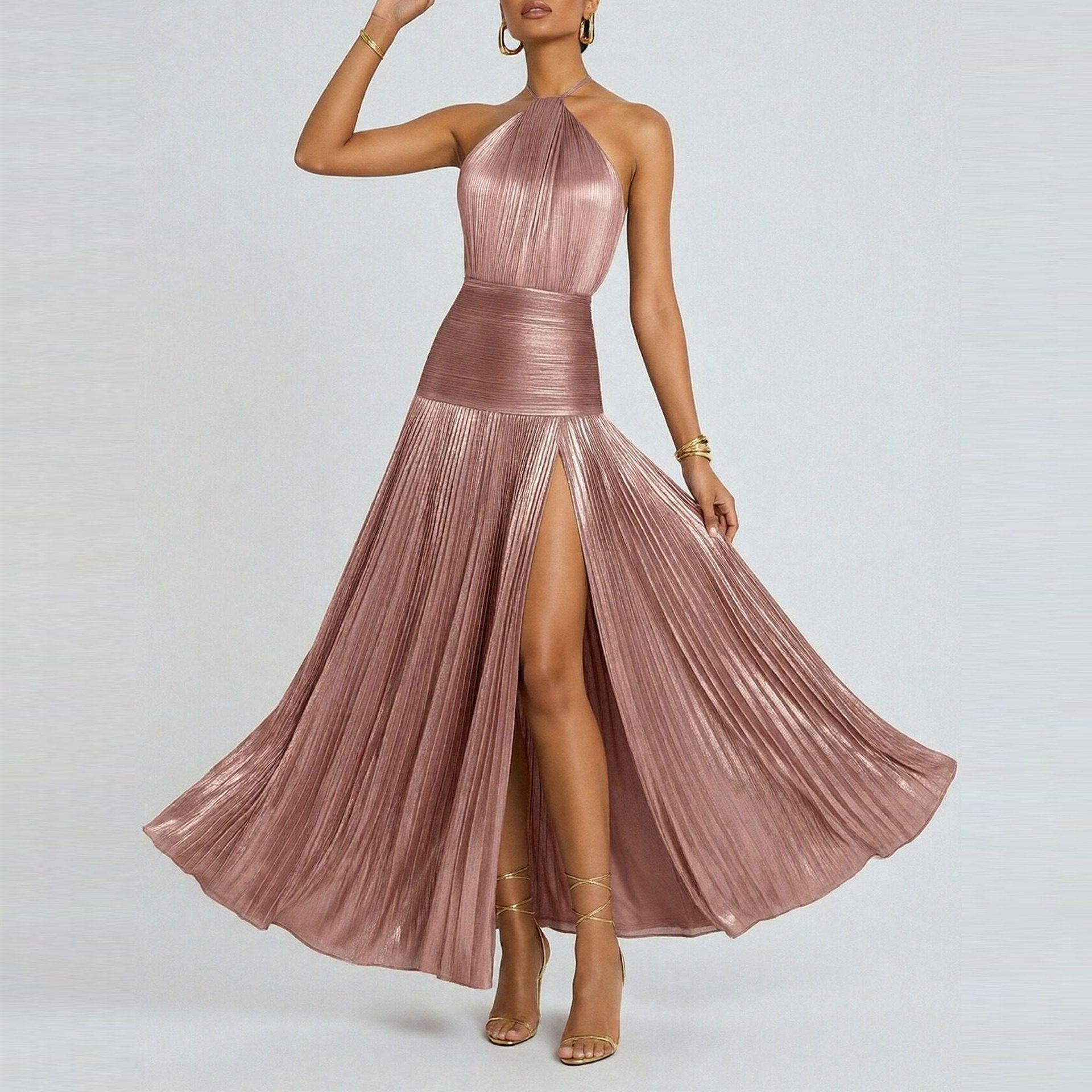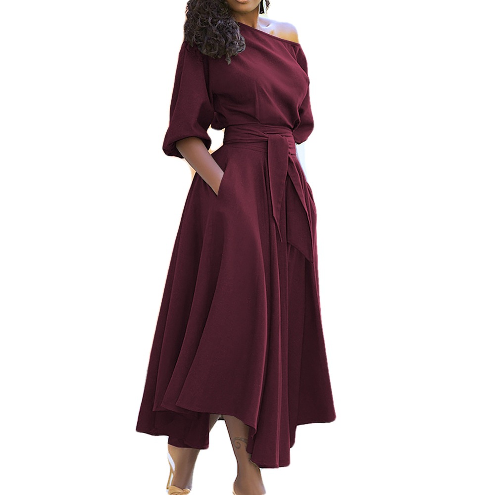 2025 New Women's Simple Slanted Shoulder Tie With Waist Solid Color Dress Woman HZ0108