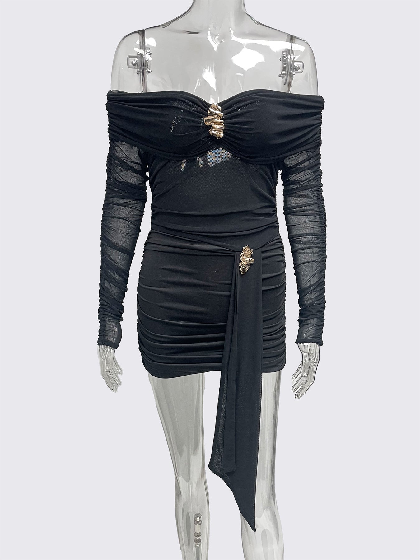 2025 Pure Hot Girl Autumn New Waist Repair Slim Thin Folds A Word Shoulder Bag Hip Dress HZ0108