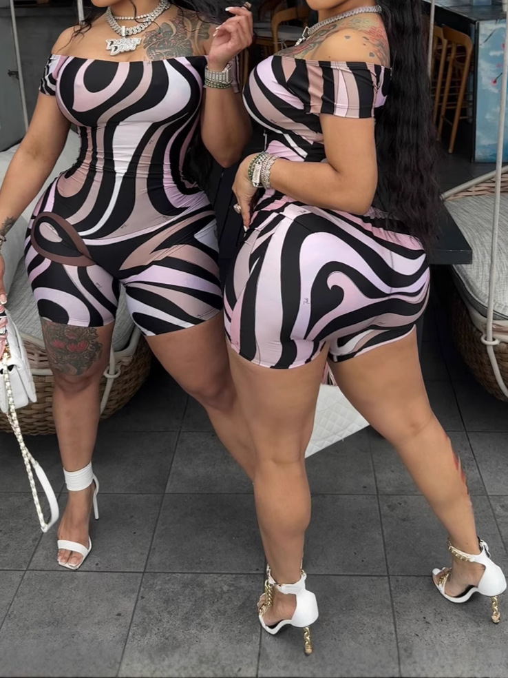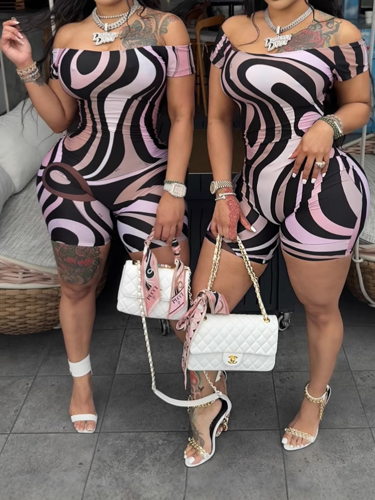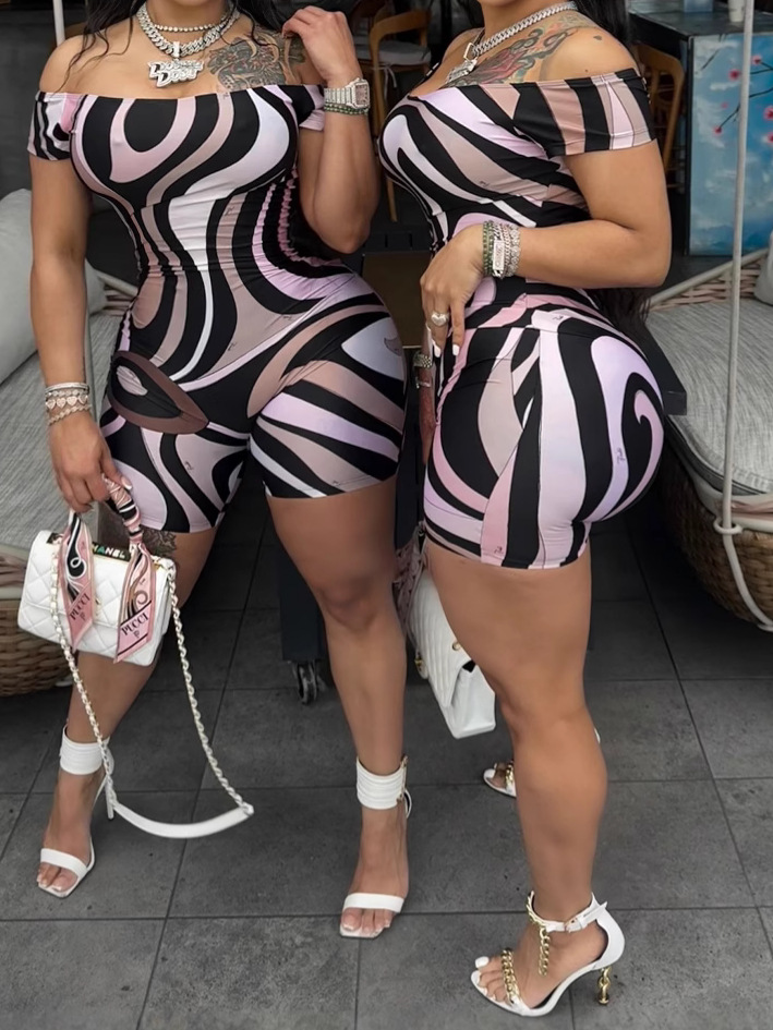 2025 Summer Explosion Of Women's Sexy Breasts Fashion Geometric Pattern Printing Jumpsuit HZ0108
