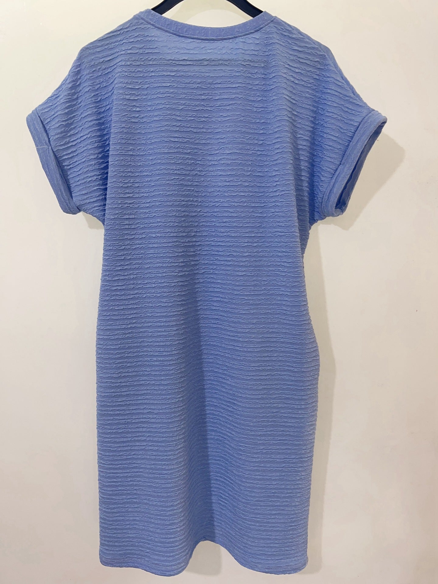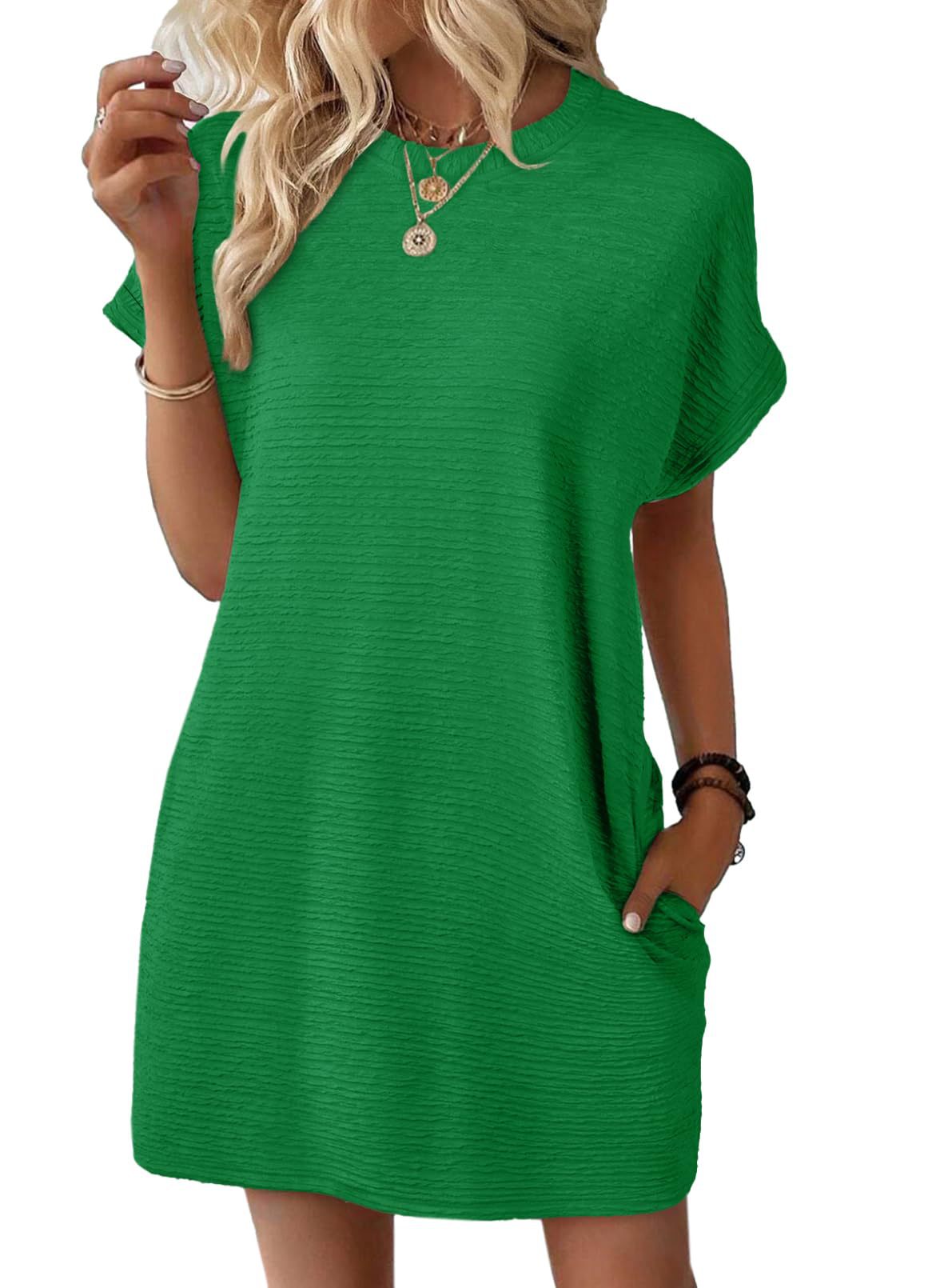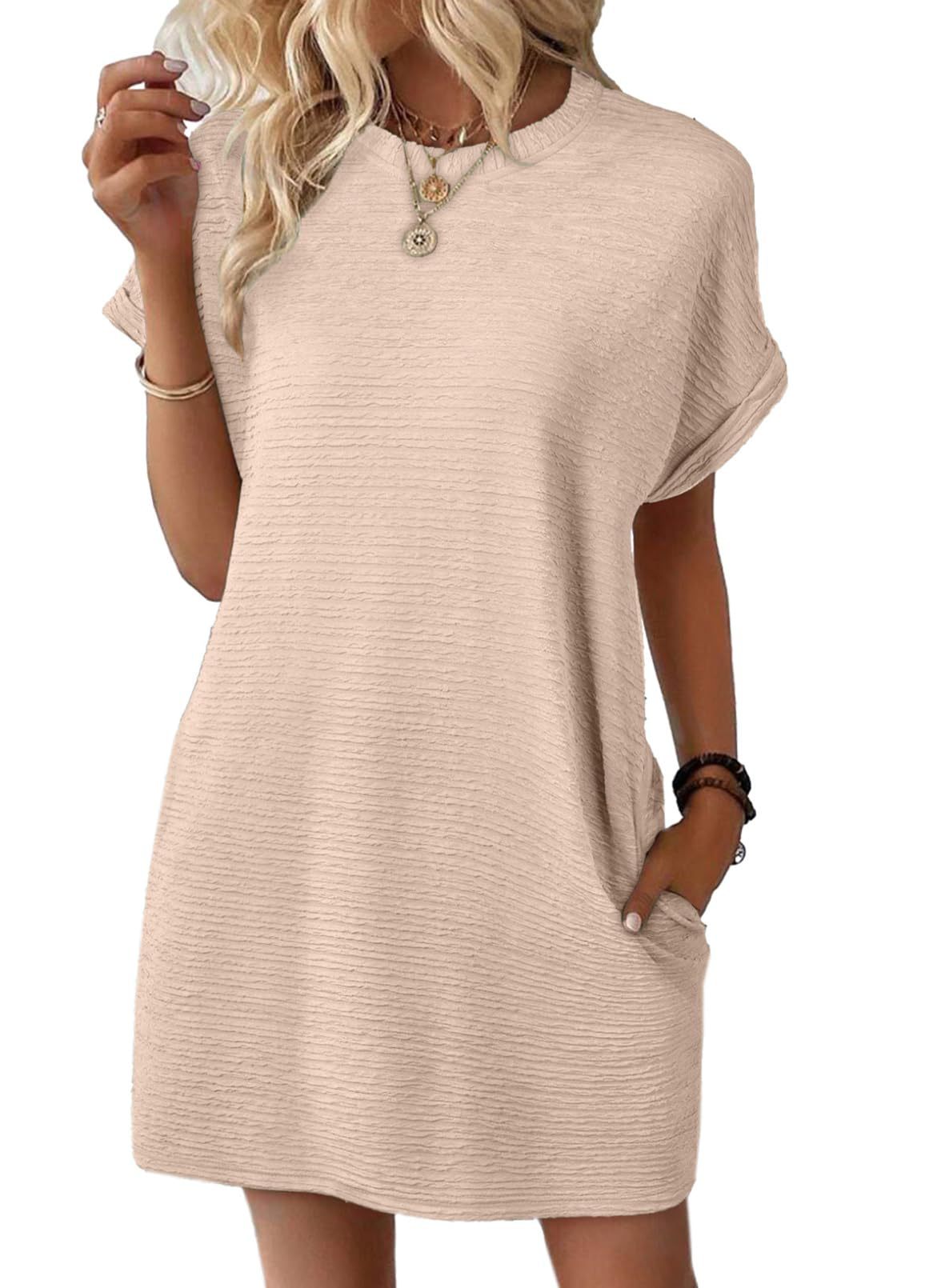2025 Summer New Loose Round Collar Pocket Solid Color Short-Sleeved Dress Woman HZ0108