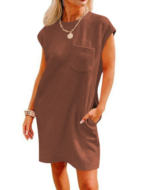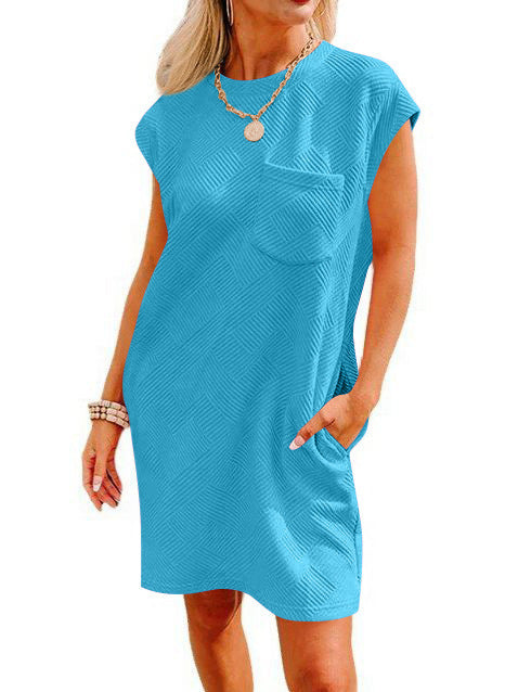 2025 Tiktok Leisure Sports Round Collar Pocket Short-Sleeved Loose Dress HZ0108