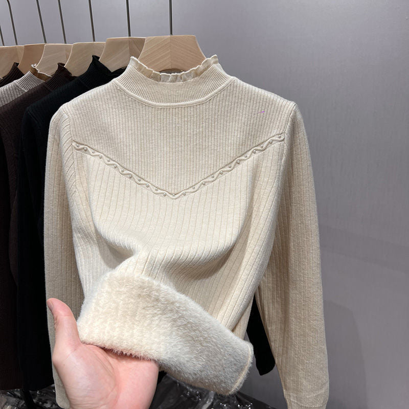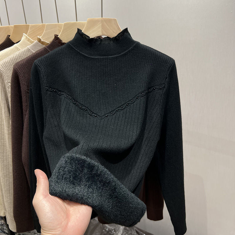 Autumn And Winter New Half-High Collar Bottom Shirt Women With Velvet Thick Sweater Women's One Knitted Shirt HZ0108