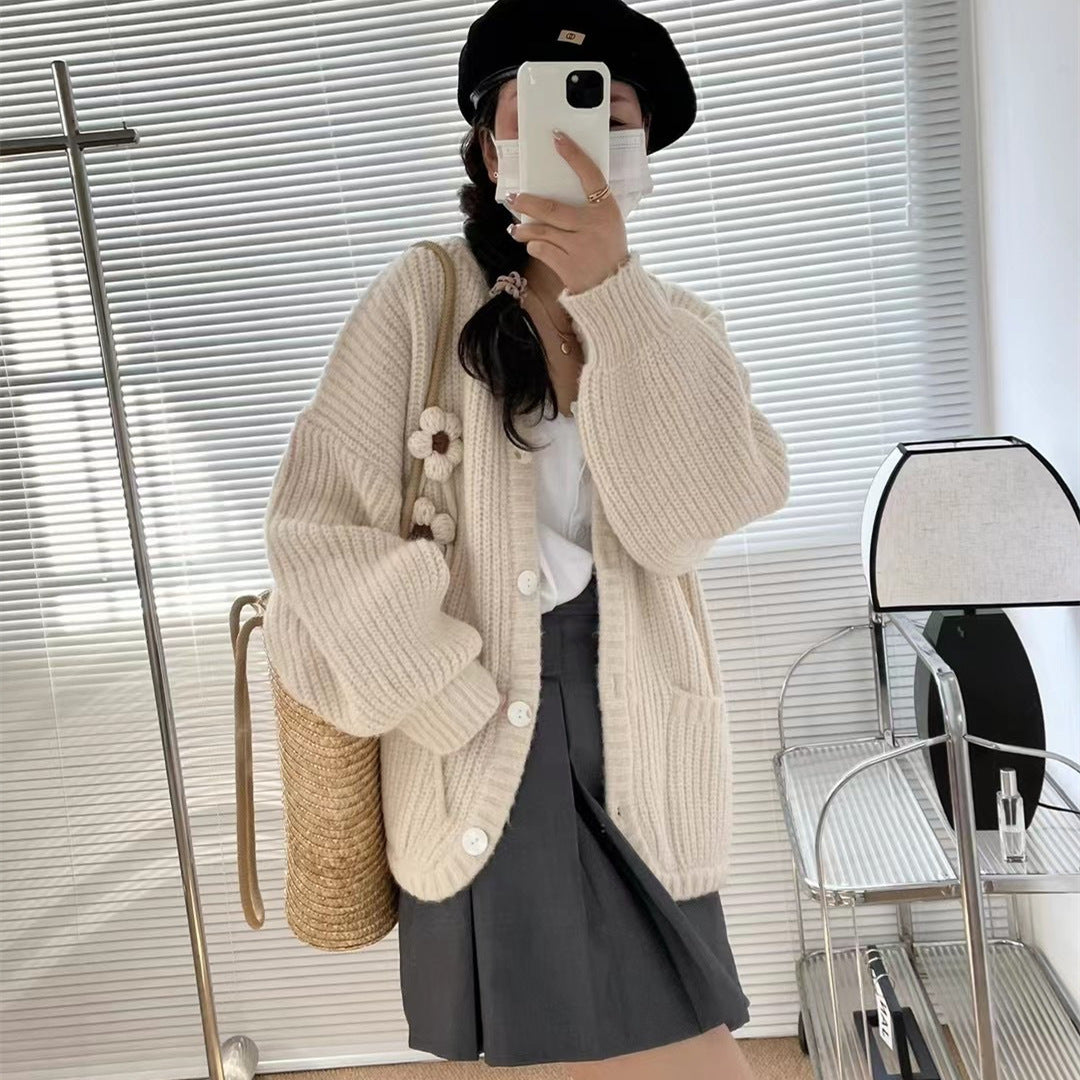 Autumn And Winter New Korean Version Of The Design Sense Three-Dimensional Flower Round-Neck Sweater Gentle Lazy Wind Loose Knitted Shirt Jacket HZ0108