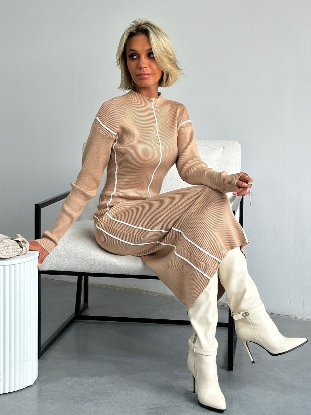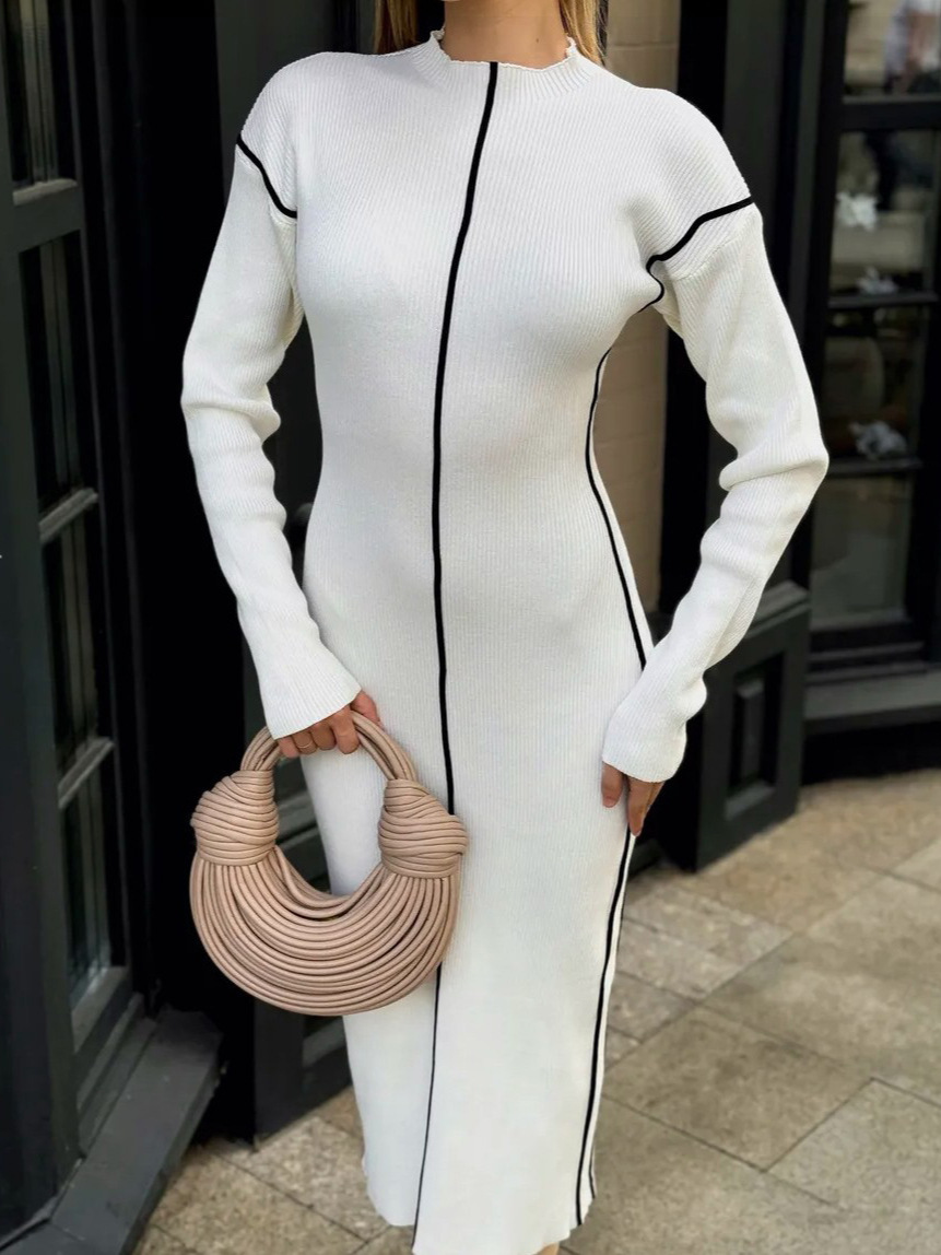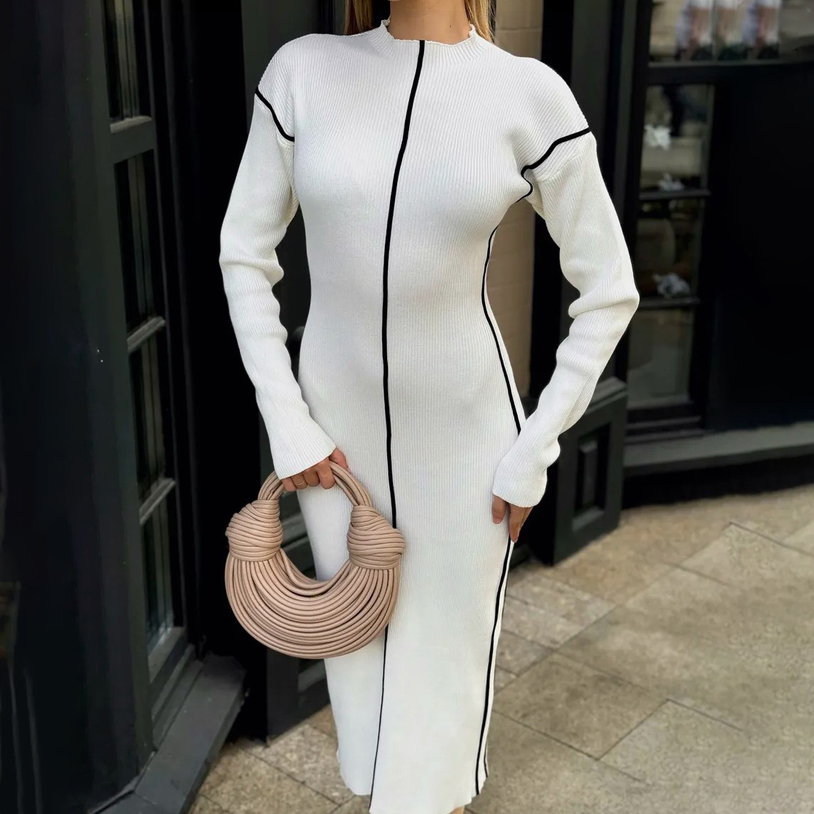 Autumn New Color Line Dress Female Senior Sense Of The Ass Long Sleeve Temperament Elegant Knitted Dress Woman HZ0108