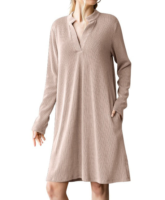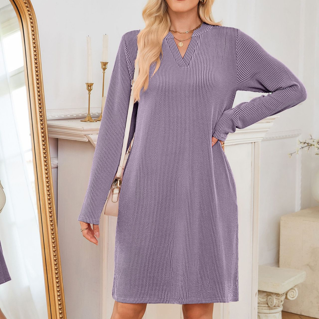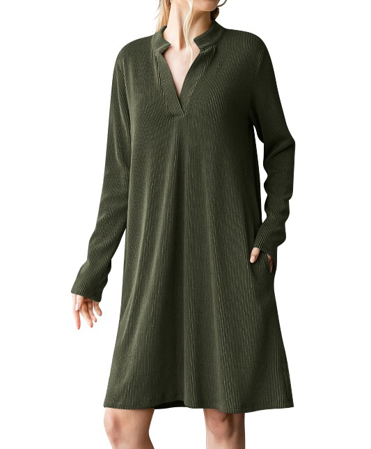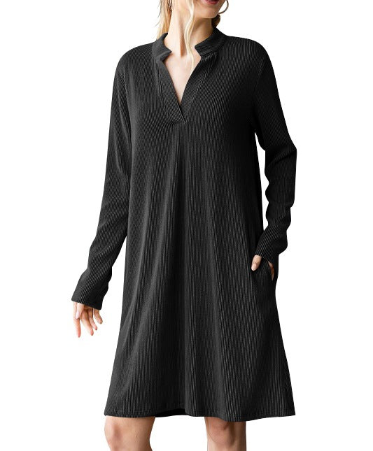 Autumn/Winter 2025 New Lady V-Neck Long Sleeves Loose Dress HZ0108