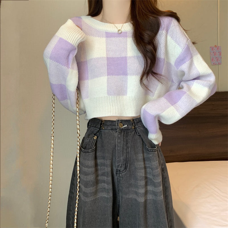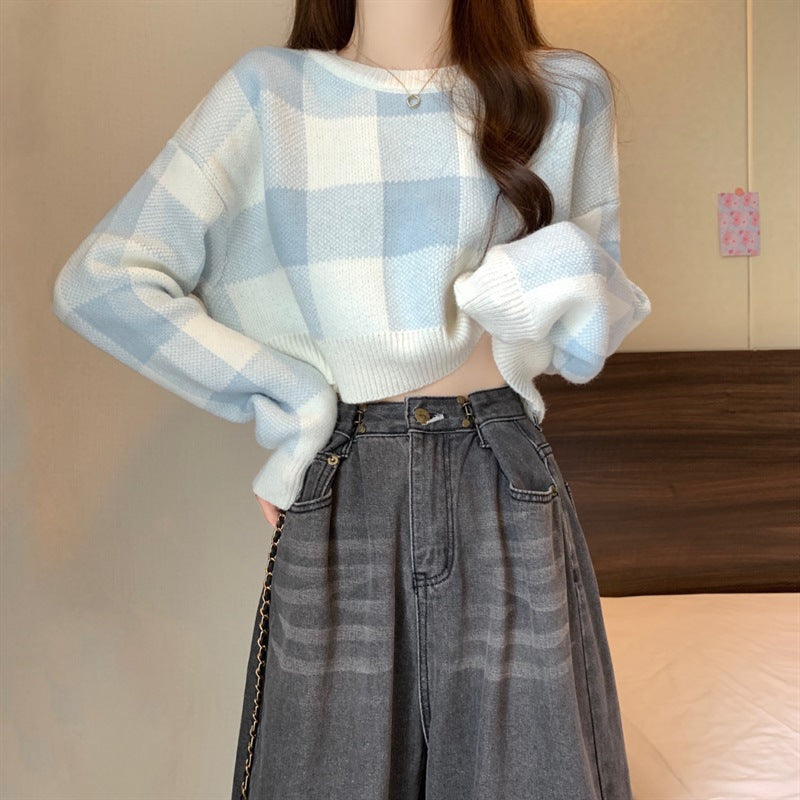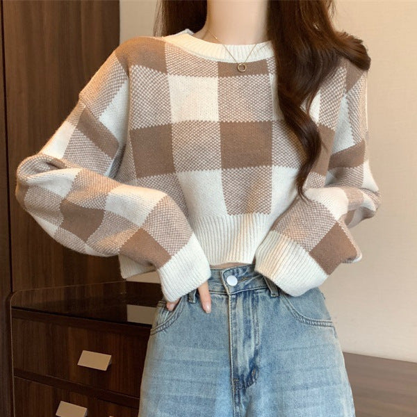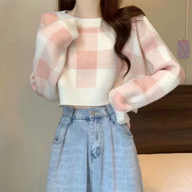 Gentle Lattice Lattice Short Jacket Bottom Sweater In Autumn And Winter New Knitted Knitted Collar Top HZ0108