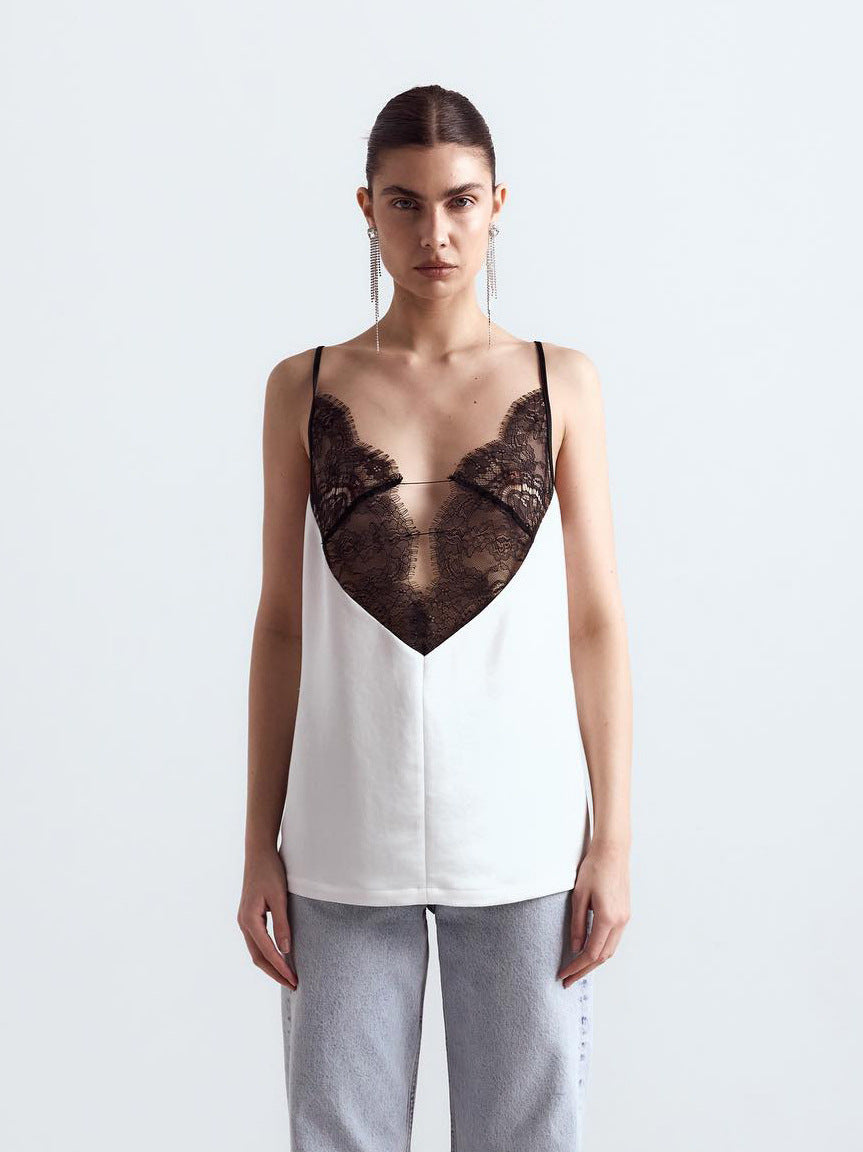 High-End Lace Spliced With Ribbon Slings Sexy Bumpy Vest Pure Pajamas Loose Blouse HZ0108