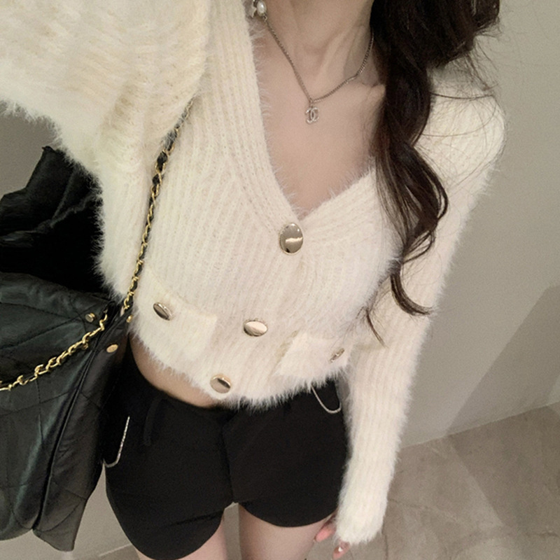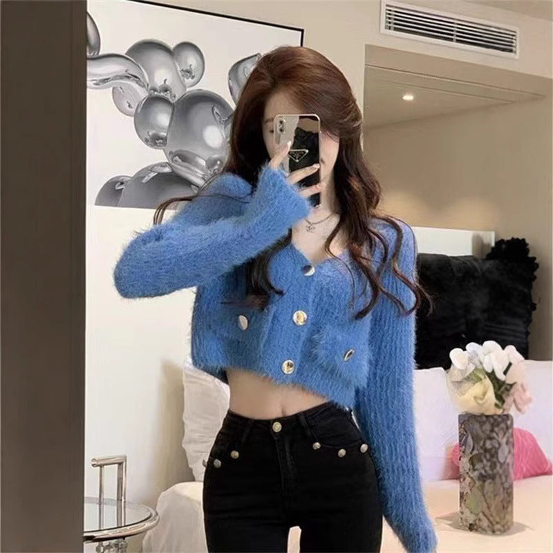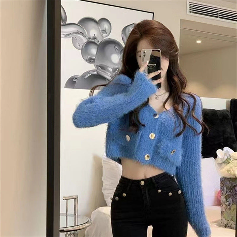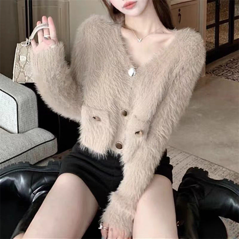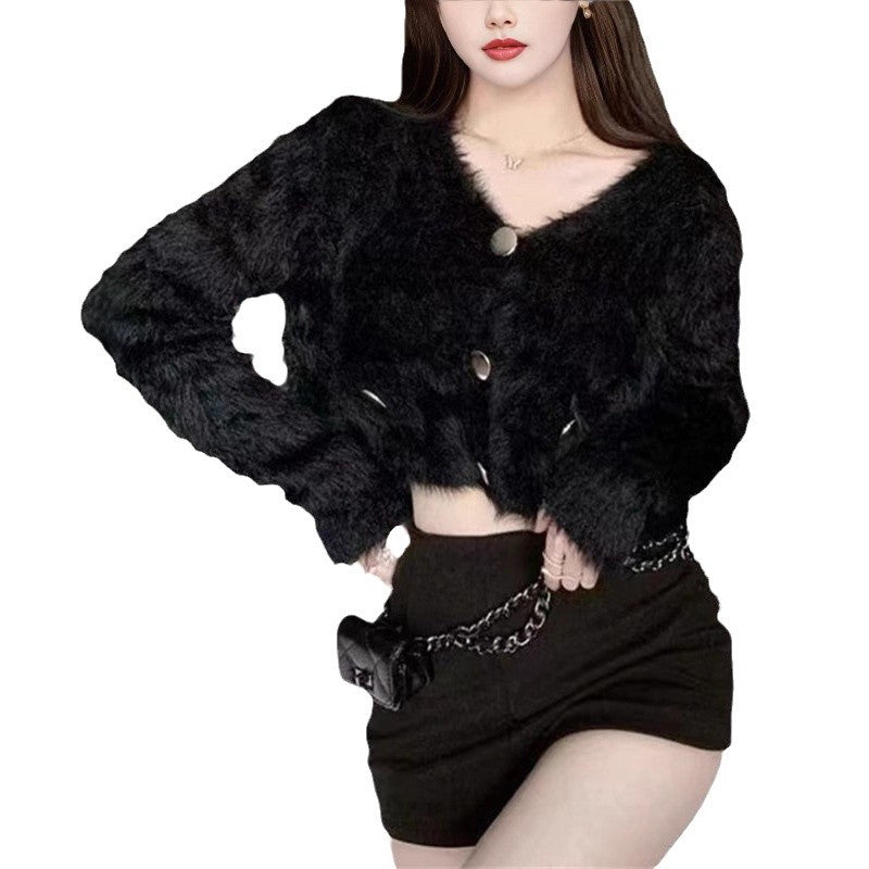 Imitation Of Sting Velvet Knitted Jersey Pure Spring And Autumn 2025 New Sweater Coat Women Winter Short Top HZ0108
