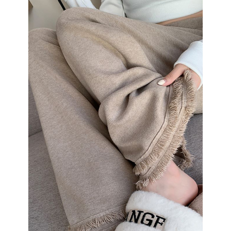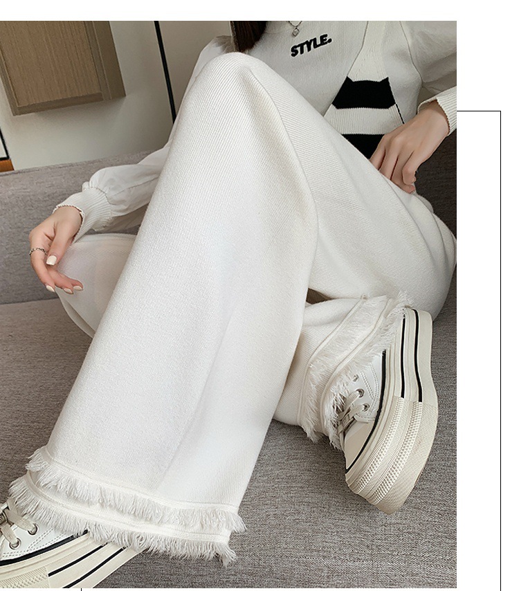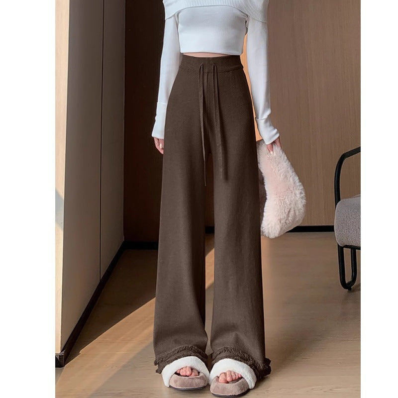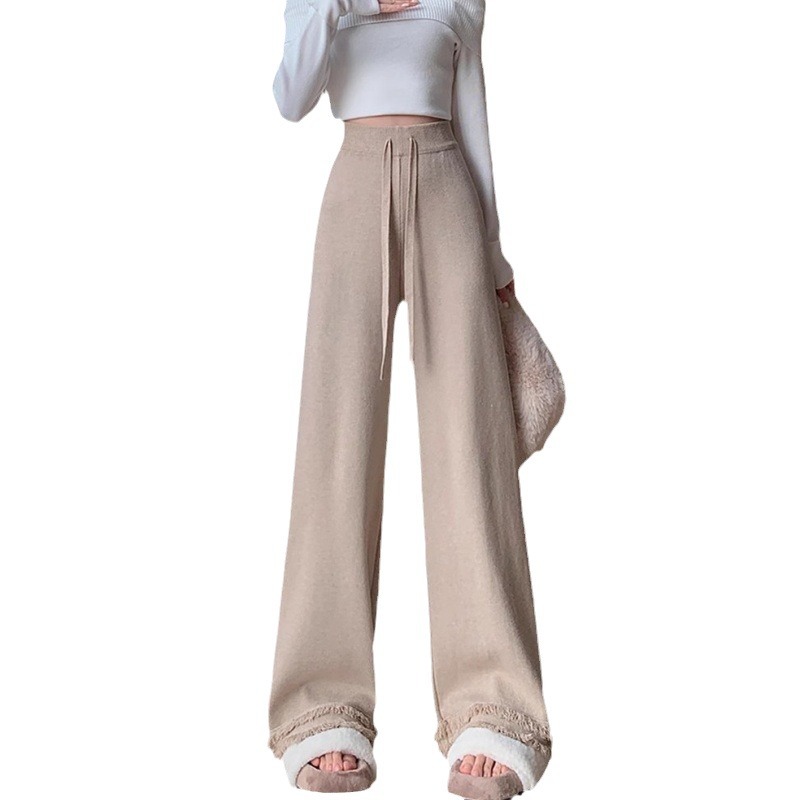Knitted Broad-Legged Trousers Women's New Spring And Autumn Lazy Windy Glutinous Rice Trousers High-Waist Hanging Casual Drag Trousers Soft Glutinous Pants Tide HZ0108