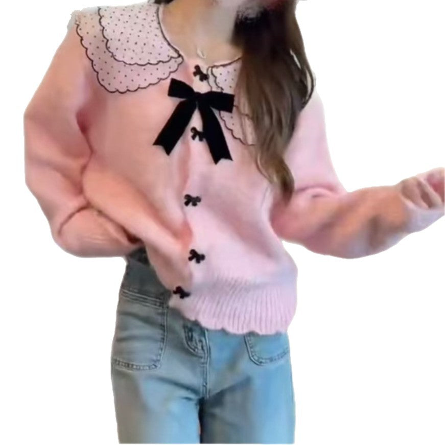 Korean Ocean Gas Age-Reasing Loose Knitted Women's Jacket 2025 Autumn And Winter Sweater Languid Soft Glutinous Doll Collar Top HZ0108