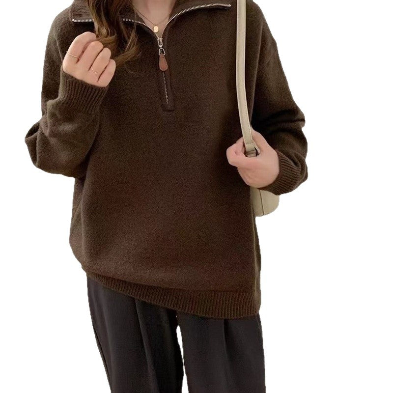 Korean Version Of Half Zipper Collar Collar Sweater Women's Autumn And Winter Knitted Women's Loose Casual Soft Sweater HZ0108