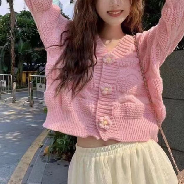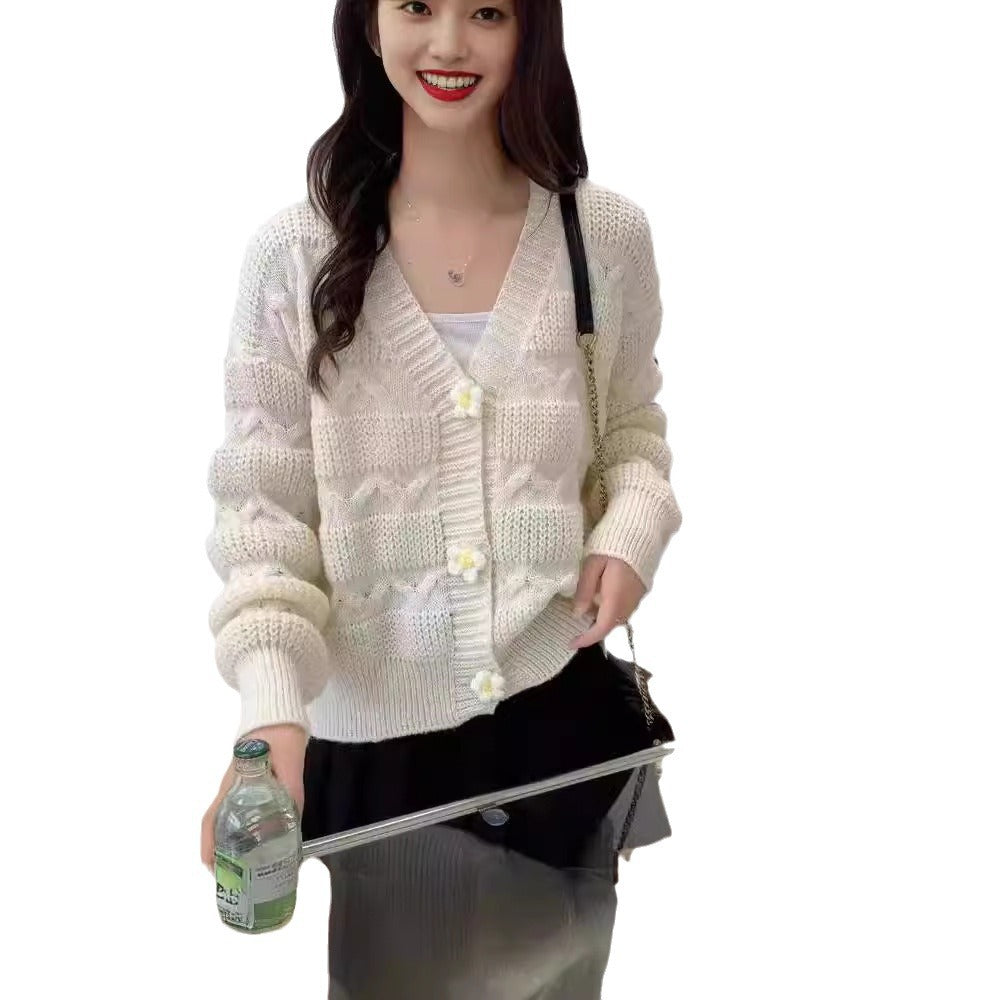 Lazy Wind Sweater Korean Version Of Autumn And Winter New Three-Dimensional Flowers Small Fragrant Knitted Open Shirt Wearing French Women's Coat HZ0108