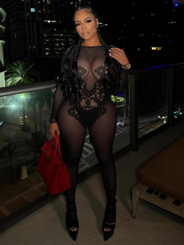 New 2025 Solid-Colored Round-Necked Back-Up Sexy Perspective Long-Sleeved Knit Trousers HZ0108