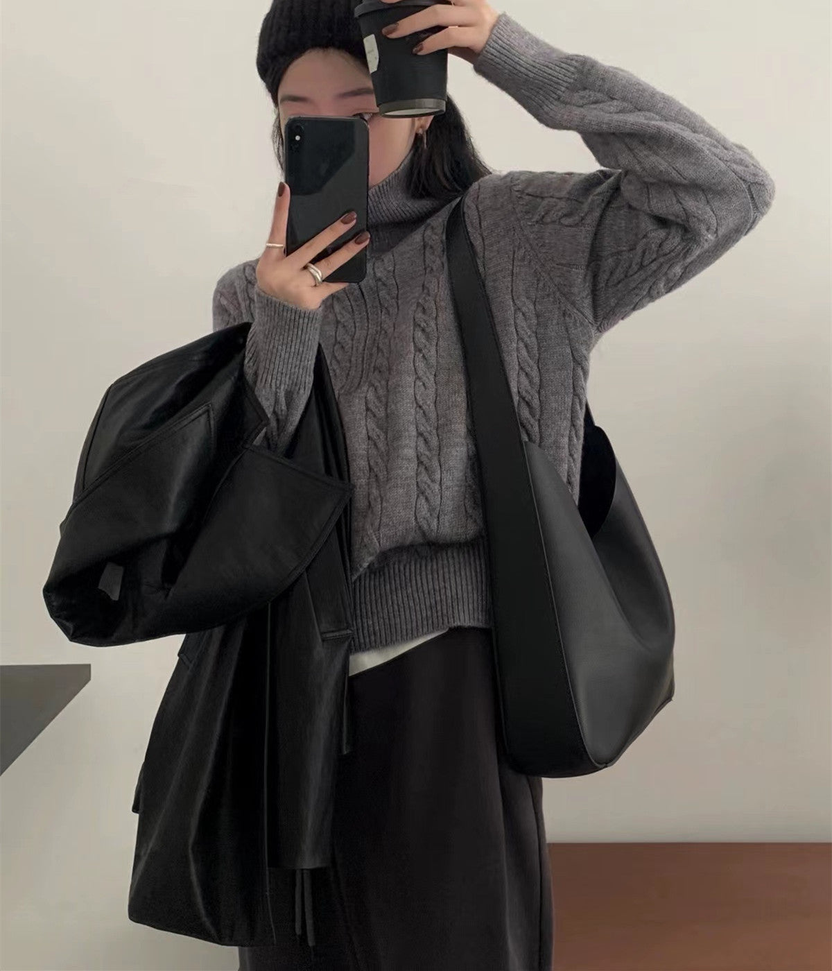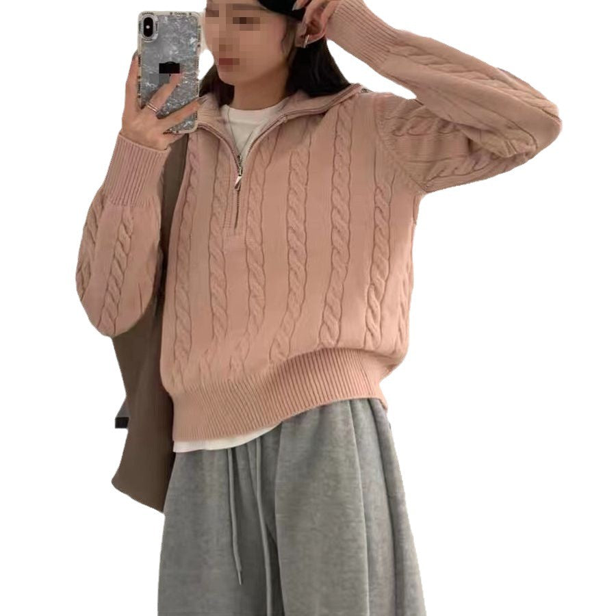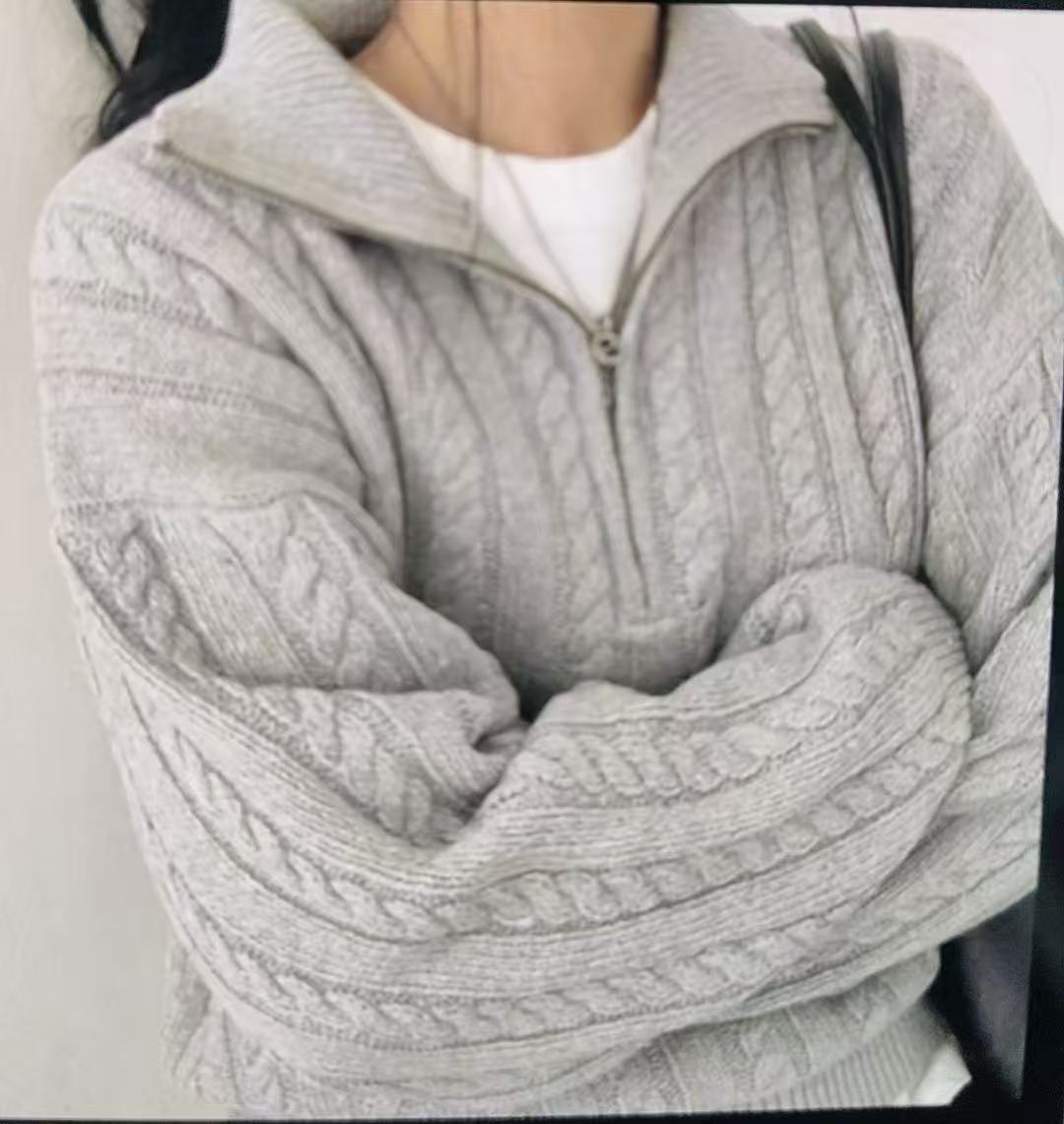 Over-Collar Design Jersey Knitted Jersey Autumn And Winter Women's Long-Sleeved Solid Color Temperament Loose Tops Women's Coat HZ0108