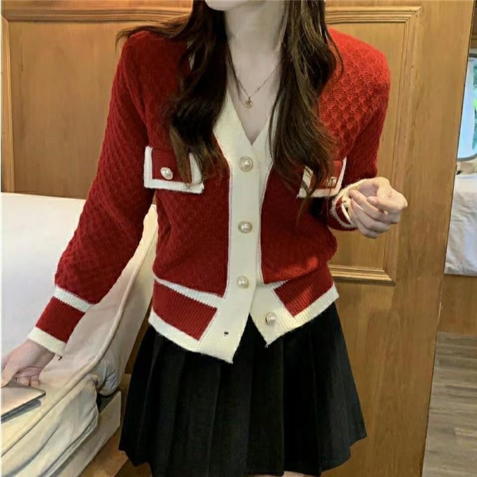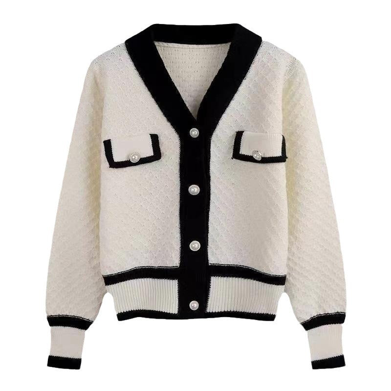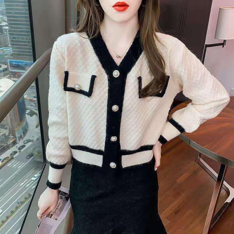 Small Fragrant Knitted Sweater Women 2025 Spring And Autumn New Hit-Colored Cardigan Jacket Casual Temperament V Collar Blouse Tide HZ0108