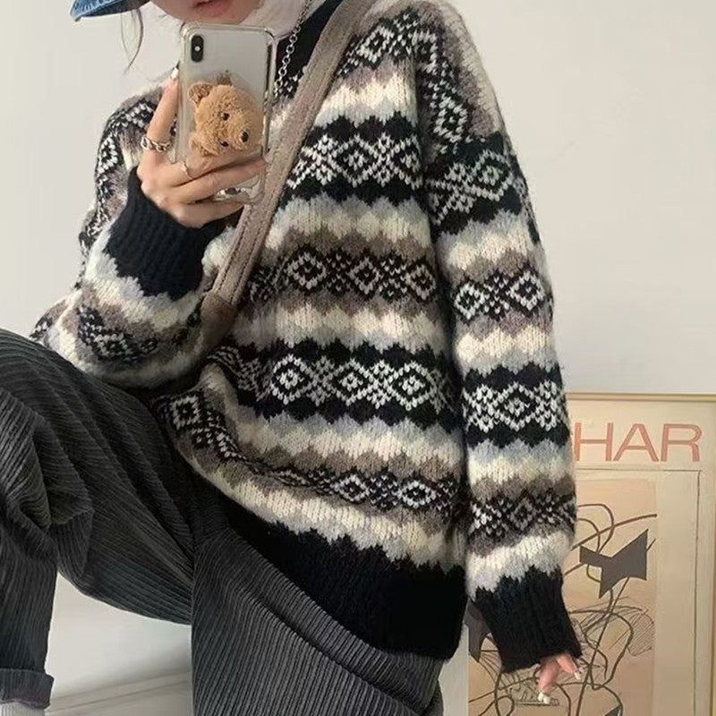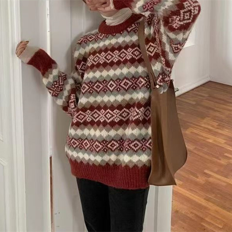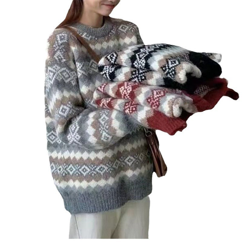 Vintage Jaspers Lazy Korean Edition Sweater Women's New Loose Round Collar Knitted Shirt In Autumn And Winter HZ0108